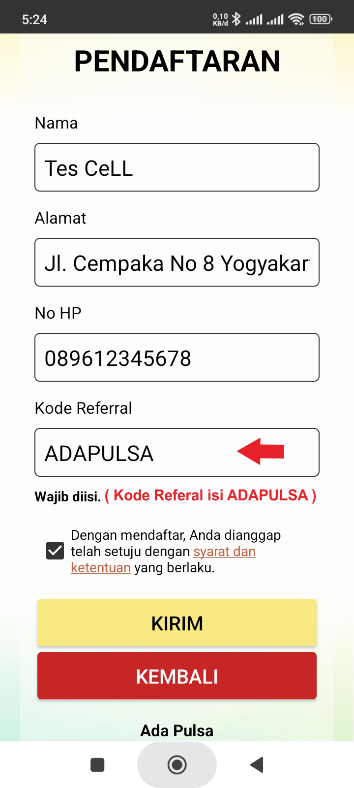 Setelah proses validasi berhasil, aplikasi siap untuk digunakan